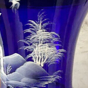 Antique Mary Gregory Cobalt Blue White Enamel Hand Painted Child Glass Vase 8"