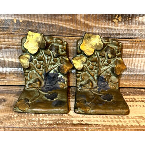 Antique McClelland Barclay Bronze Vining Ivy Bookends – Signed Pair 5" Tall x 4" Wide