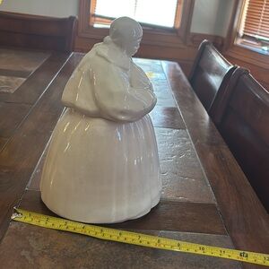 This antique McCoy cookie jar is in very good vintage condition, with some crazing and a slight crack in the arm of the mammy. It doesn’t look like the crack goes through – just surface. Very rare and hard to find!