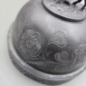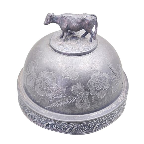 This is a beautiful antique silver plated butter dish top made by Meriden Britannia Co. It features a Victorian floral design and stands 3.5" tall. It has some wear due to its age. Please see pictures for details. Don't miss out on the chance to own this unique piece of history!