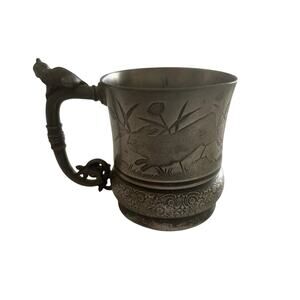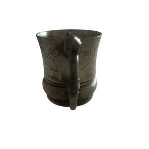 This antique child's cup from Meriden Silver Plate Co. is a beautiful piece of quadruple plate silverware. The intricate design features a rabbit (bunny) motif, making it a charming addition to any collection. The cup is in excellent condition and would make a great addition to any home or display.