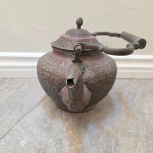 Antique Middle Eastern Persian Qajar Handmade Tin Cooper Kettle Coffee Tea Pot
