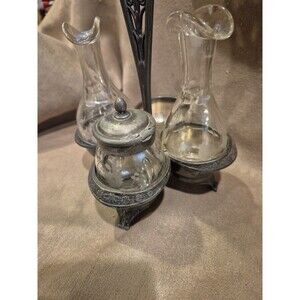Antique Middletown Quadruple Silverplate Embossed Cruet Condiment Server FLAW