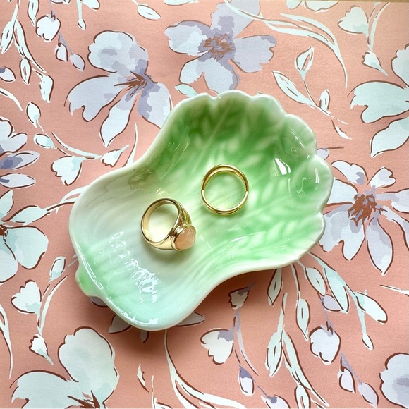 Antique Mint Green Ceramic Lettuce Dish