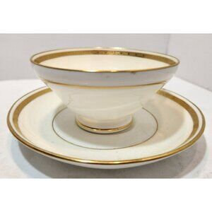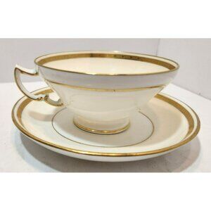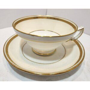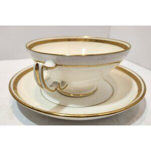 Antique Mintons England Footed Cup & Saucer H3251 Gold Encrusted Band Cream Rim