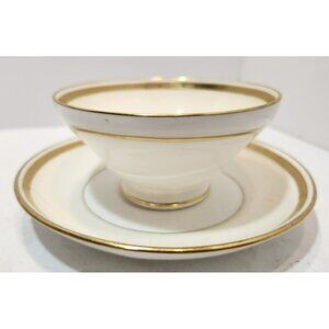 The Antique Mintons England Footed Cup & Saucer H3251 set is a luxurious and elegant piece of dinnerware, featuring a gold encrusted band and cream rim. This Victorian-style tea cup and saucer set is made of high-quality bone china, showcasing the intricate craftsmanship of Mintons, a renowned brand hailing from England. Perfect for collectors or those looking to add a touch of sophistication to their kitchen and dining experience, this set is a timeless and classic addition to any home. Pre-owned by collector. In good condition with no chips or cracks. Please see pictures for details.