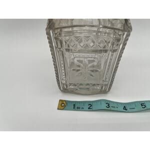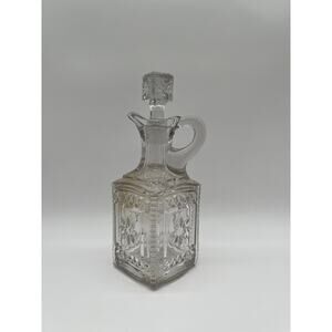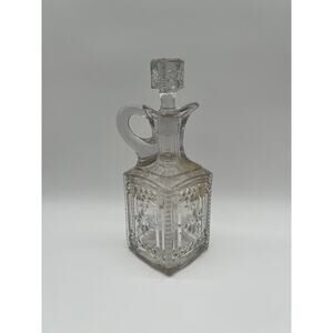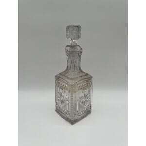 Elevate your antique glassware collection with this exquisite EAPG decanter in the “Grace” pattern, produced by the Model Flint Glass Company around 1885. This rare piece features richly detailed pressed glass panels with a floral motif, a square base, and its original matching stopper with matching starburst detail. A beautiful example of 19th-century American craftsmanship.