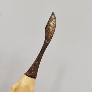 Six piece antique French Ivory (not real ivory, but a celluloid material) vanity items - two nail buffers, nail file, button hook, two cuticle pushers. Monogrammed with an MC. Made by Dubarry.