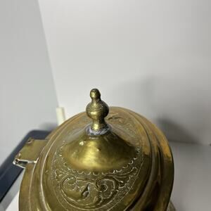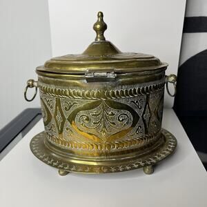 Antique Moroccan Hand Etched Hammered Footed Brass Tea Caddy Early 1900s