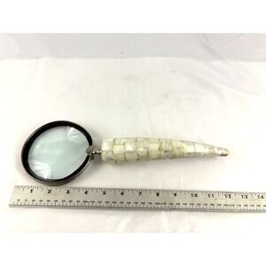 Antique Mother Of Pearl Magnifying Glass Vintage Handheld Magnifier Gift 12"