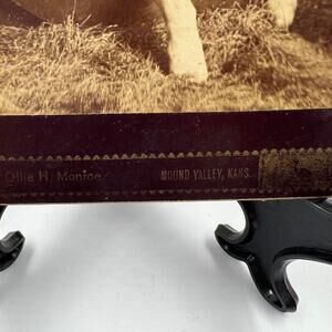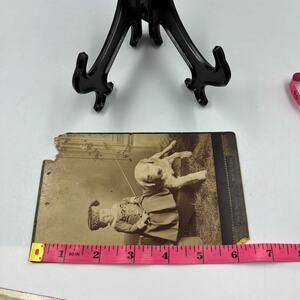 Antique mounted card stock 1800s photo black and white, small boy with puppy dog. Mount and picture have some damage as pictured.