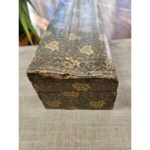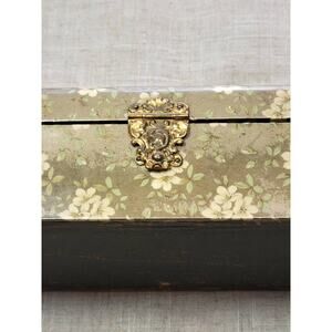 Antique Necktie Box, Victorian Floral, Lined Hinged, Vintage Dresser Catchall