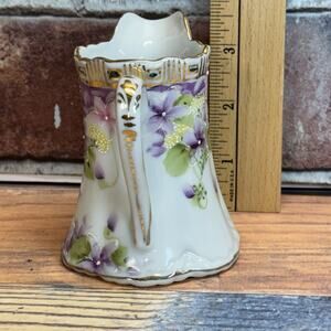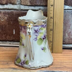 Add a touch of elegance and history to your collection with this beautiful antue Nippon pitcher. Crafted between 1891 and 1911 by Morimura Gumi, this 4.5-inch pitcher features exquisite craftsmanship, delicate hand-painted floral designs, and luxurious gold accents. A stunning representation of early Japanese ceramic artistry, this piece is perfect for collectors or those seeking a timeless decorative item.