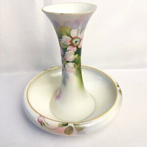 Add a touch of Edwardian charm to your vanity or collectibles shelf with this antique Nippon porcelain hat pin holder, a beautifully hand-painted piece from early 20th-century Japan. This rare grooming accessory features a delicate floral motif with pink and white blossoms and soft green leaves. Marked “Nippon” on the underside, confirming production between 1891 and 1921