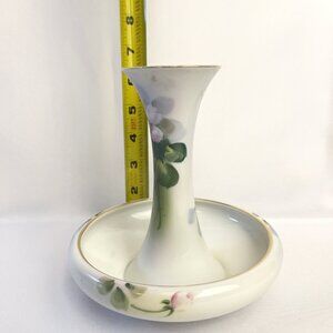 Antique Nippon Porcelain Hat Pin Holder Hand-Painted Floral & Gold Early 1900s