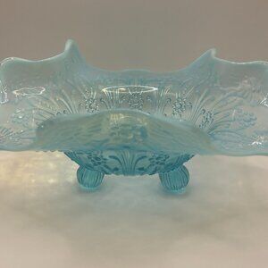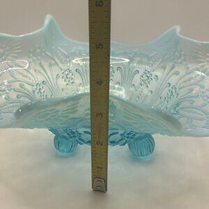 Antique Northwood Blue Opalescent Pearl Flowers Footed Bowl 9” Diameter