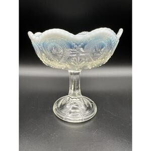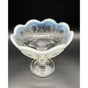 Antique Northwood Clear Glass Opalescent Scroll with Acanthus Pattern 5” Compote