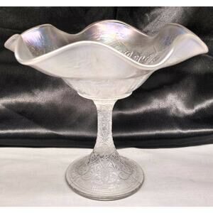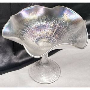 Antique Northwood Hearts and Flowers Iridescent Carnival Pedestal Compote Dish