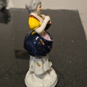 Antique Occupied Japan figurine Lady w/ flower basket gold gilding collectible