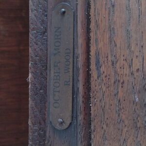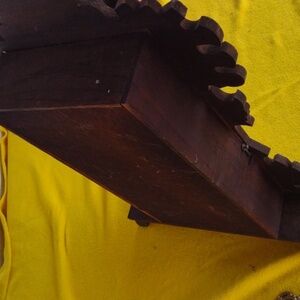 Enhance your home decor with this elegant vintage wooden wall clock. Featuring intricate gold accents, this piece adds a touch of classic charm to any room.By R.Wood,date and manufacture unknown.Missing parts (glass door, Clock face cover,key to wind& original maintenance kit.As is,keeps time,but,will need a deep inside cleaning.