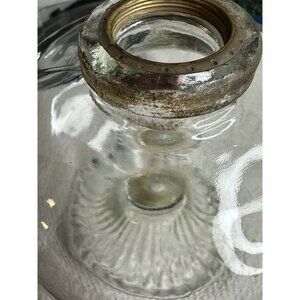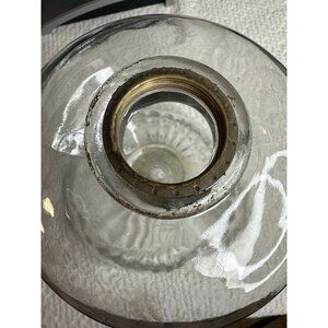 Replacement antique oil kerosene lamp Base is a unique addition to any collection. Missing Parts. The clear glass and ribbed pattern give it a Victorian style that is sure to catch the eye. The lamp is made of high-quality materials and has an oiled finish that adds to its antique charm.
