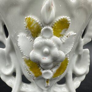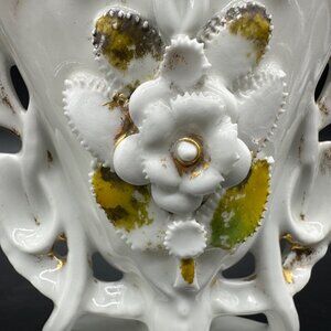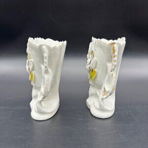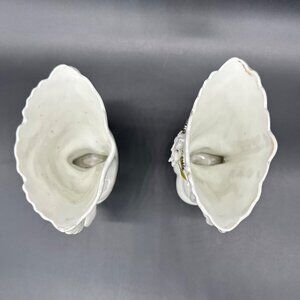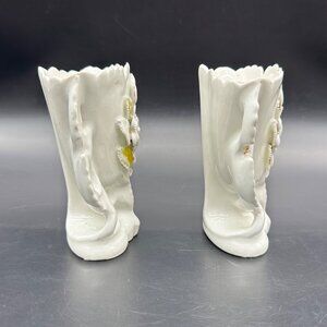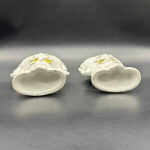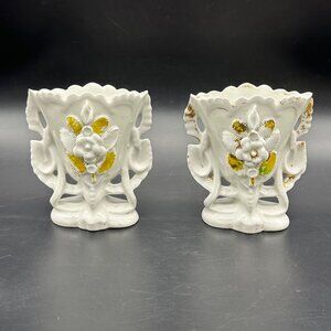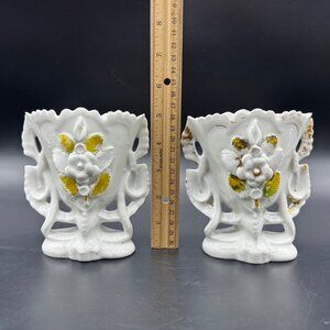 Antique Old Paris Porcelain Spill Bridal Vases Floral Scalloped Edges Pair READ