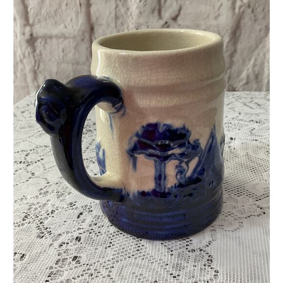 Antique Old Sleepy Eye Monmouth Mug Stein Teepee Native American Gray Cobalt