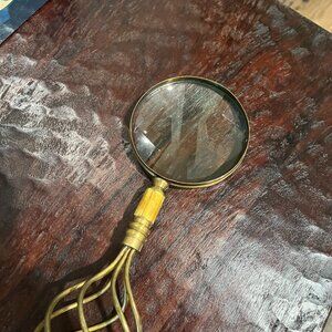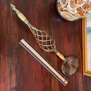 Antique Ornate Brass Art Nouveau Magnifying Glass Shell Inlay Decor Timeless