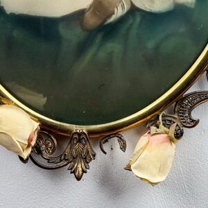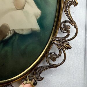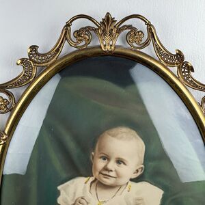 Antique Ornate Brass Oval Convex Glass Frame with HandTinted Baby Portrait 21x15