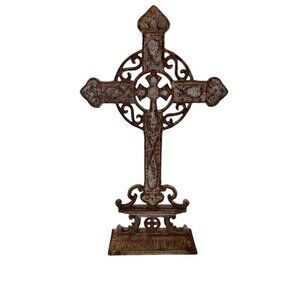 Antique Ornate Cast Iron Celtic Cross Tabletop Decor