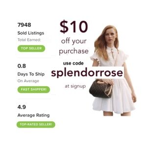 $10 off your first purchase when you sign up with code SPLENDORROSE