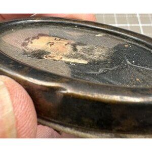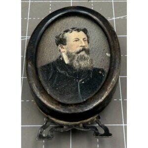 Antique Oval Portrait Sterling Frame Bearded Hand Painted Man Stand