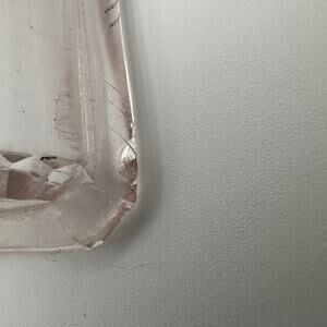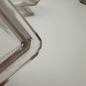 There are 2 spots on the rim of the lid that have small chips. One of the corners of the foot was either originally ground down, or was polished because of a chip at some time in the life of the piece. It is smooth and not noticable.