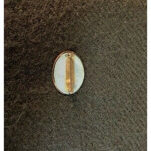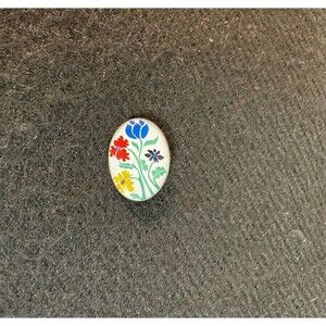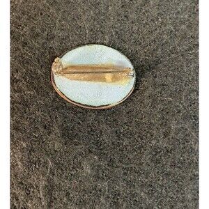 Painted or stenciled porcelain on top of copperit is my opinion this piece is antique and has had a new pin glued to the back at some point. There is mild crazing due to age. Just an interesting and beautiful tiny pin.