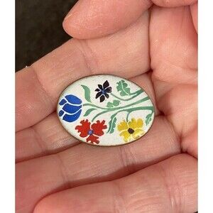 Antique Painted Porcelain on Copper Floral Tulip Design Brooch Lapel Pin READ