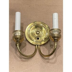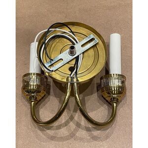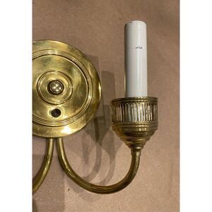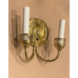 Antique Pair of Classic Double-Arm Wall Sconces Polished Brass Finish Transition