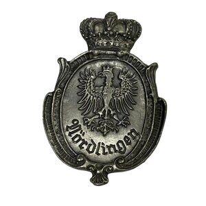 This pewter badge captures the essence of Nördlingen's rich history, featuring a crowned eagle emblem. A fine collectible piece, it reflects the traditional German craftsmanship and heraldic symbolism. Ideal for adding a touch of historical significance to any collection.
