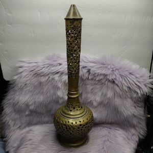 Antique Pierced Brass 20" Tall Moroccan incense burner aka Mabkhara