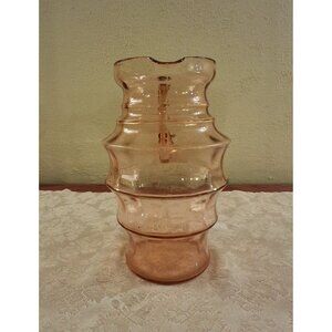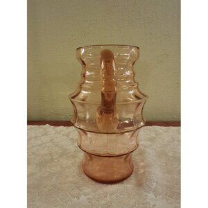 Antique Pink Pitcher Horizonal Ribbed Depression Glass Large Ice Tea / Beverage.