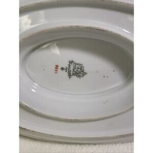 This Antique Porcelain White Gold Gilded Gravy Boat with Underplate by Royal Tettau is a stunning piece of Bavarian craftsmanship from the 1940s. The elegant oval shape and Art Deco style make it a standout addition to any table setting. Made of high-quality porcelain and featuring a glossy finish, this gravy boat exudes sophistication and vintage charm. Perfect for serving gravy or sauce at special occasions, this decorative piece is a true testament to the artistry and production techniques of German pottery.