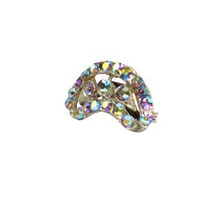 Antique Pot Metal Small Brooch with AB Crystals, Marked AJC, Crescent Moon Shape
