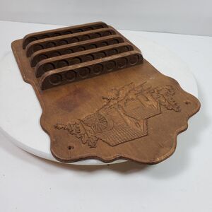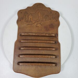 Antique Primitive Thimble Wall Display Wood 16x10x2 Inch Engraved Old Mill Scene