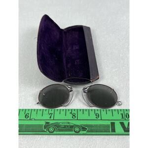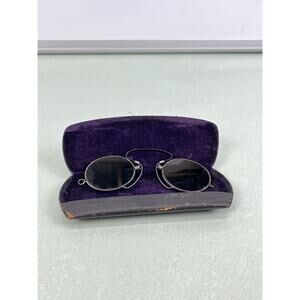 Antique Prince Nez Nose Pinch Glasses Purple Felt Case 1900s