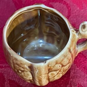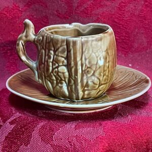 Here’s a really RARE demitasse teacup and saucer set. Another one that belonged to my Grandmother. I can only describe it as a Tree Trunk, wood look. Completely hand painted with watercolors and then glazed.
