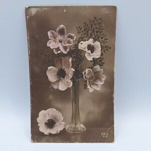 Antique REX 619 Floral Postcard Sepia Botanical Art Belgium Postmark Brown Aged
