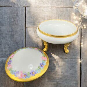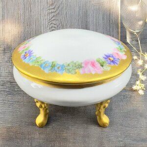 Antique ROYAL BAYREUTH Bavaria Footed Trinket Dish Powder Jar Canister Container