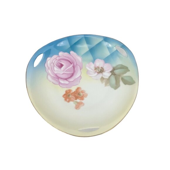 This exquisite antique serving bowl from RS Germany showcases a stunning hand-painted floral design accented with gold trim. Ideal as a decorative piece or for serving, this bowl reflects fine craftsmanship and artistic detailing. The delicate flowers and vibrant colors make it a charming addition to any collection or table setting.