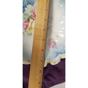 This Antique RS Prussia Pink Roses Gold Trim Porcelain Bowl from Bavaria is a stunning piece of Victorian-era decorative cookware. The round bowl features a beautiful floral pattern with pink, yellow, and white roses, showcasing the art pottery production style of the late 19th century. Made in Germany in 1898, this gilded bowl is adding a touch of elegance to any home decor. With its glossy finish and intricate design, this vintage bowl is a true treasure for collectors and enthusiasts of fine porcelain. It is 9.5" across and 2.5" tall.