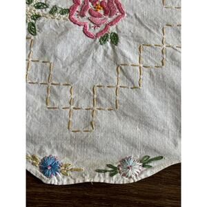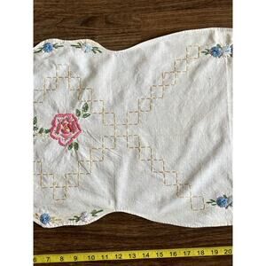Antique Rainbow Floral Embroidery Table Runner 16" x 39" White Cotton AS IS