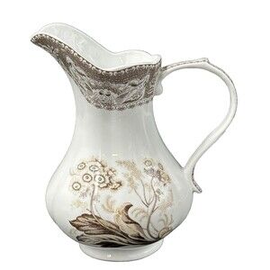 Antique Reflections Brown & White Floral Ellana Porcelain Pitcher by J Godinger